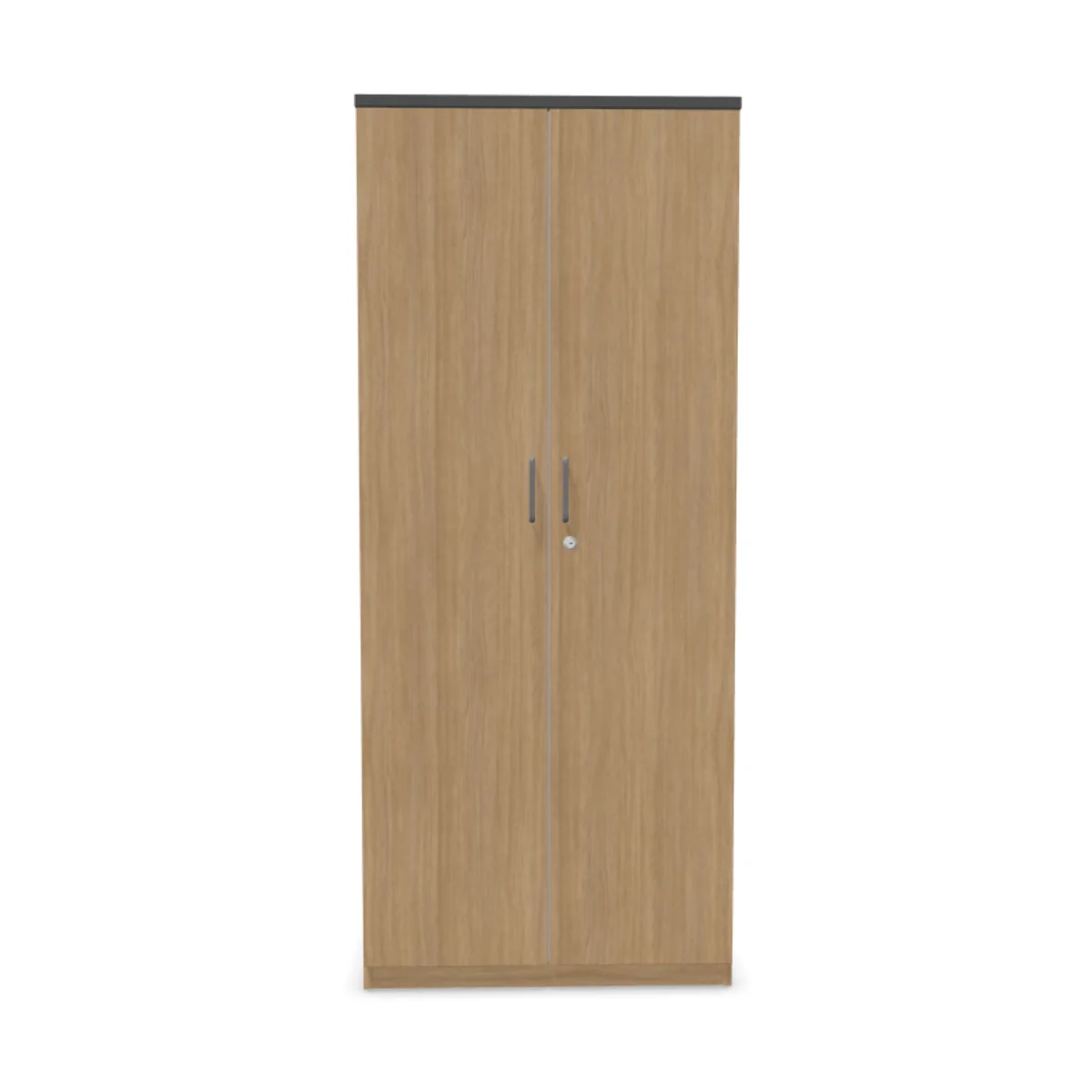 Изцяло затворен офис шкаф – с две плътни врати и заключване.