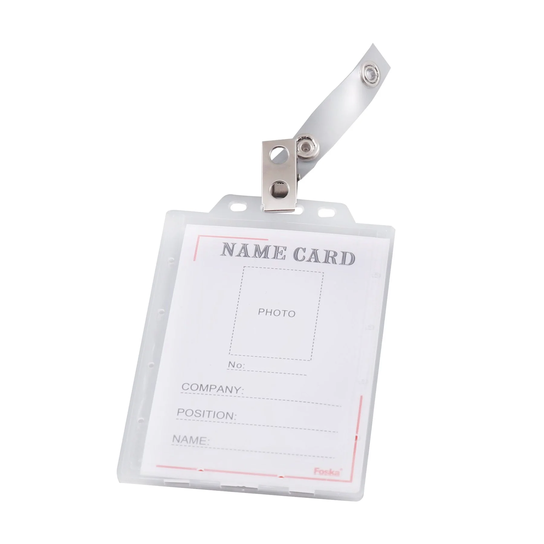 Foska Бадж, пластмасов, двулицев, вертикален, с клипс, 110 x 75 mm, 50 брояОбадете ни се и ние ще приемем поръчката ви по телефона
