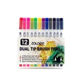 Комплектът включва 12 висококачествени двустранни маркера с акварелен ефект.