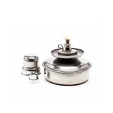 Конструкцията на отвора за пълнене на алкохолната лампа е винтова. Лесна е за работа.
