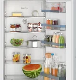MultiBox XXL: огромно чекмедже за вашите плодове и зеленчуци. EcoAirflow: оптимално движение на въздуха и постоянна температура в зоната за охлаждане. LED осветление: осветява хладилника равномерно без блясък, през целия жизнен цикъл на уреда. SuperCooling: по-бързо охлажда новите продукти, като по-този начин се предпазва вече охладената храна. Поставки за вратата с изключителна устойчивост: допълнителна височина и гъвкавост за повече пространство и стабилност.