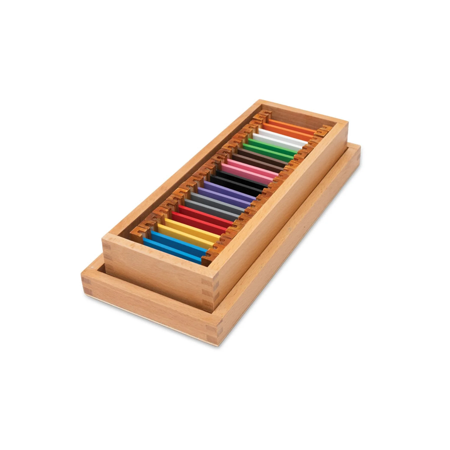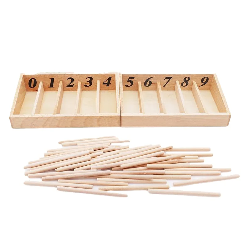 Материал на Монтесори, който е изработен от дърво. Състои се от 2 еднакви дървени кутии без капаци, всяка от които е разделена с прегради на пет отделения. На горната част на всяко отделение са написани цифрите от 0 до 9. В комплекта се съдържат и 45 дървени пръчици, които трябва да се поставят в различните отделения на кутията.
