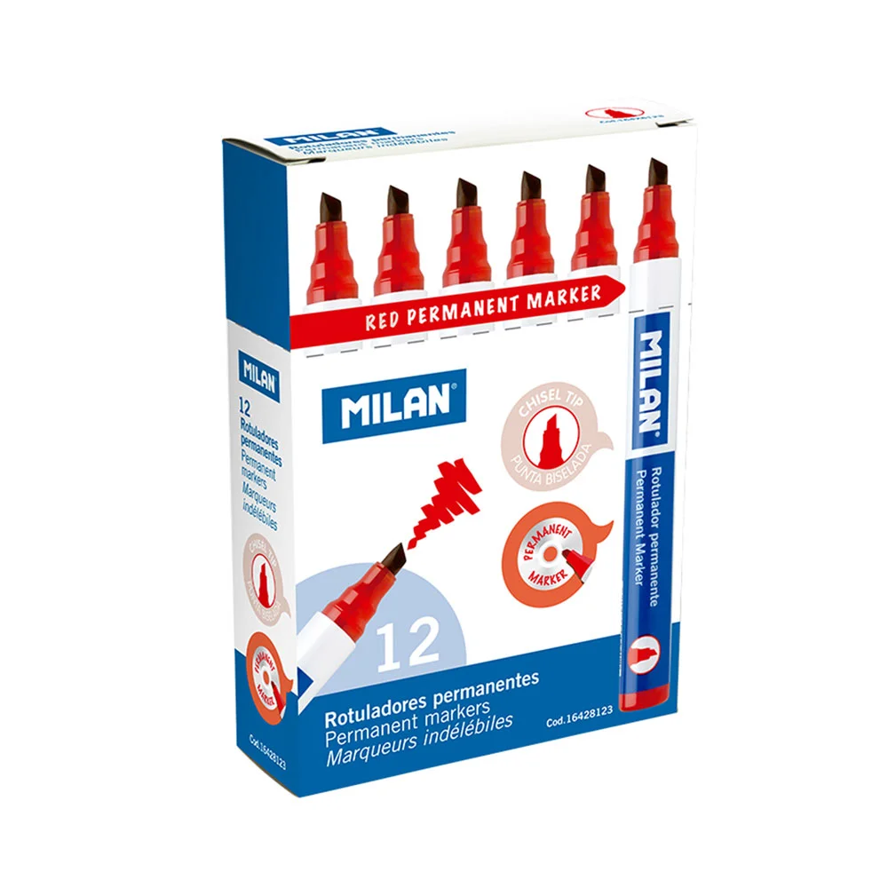 Milan Перманентен маркер, скосен, червен, 12 броя, опаковка 36Обадете ни се и ние ще приемем поръчката ви по телефона