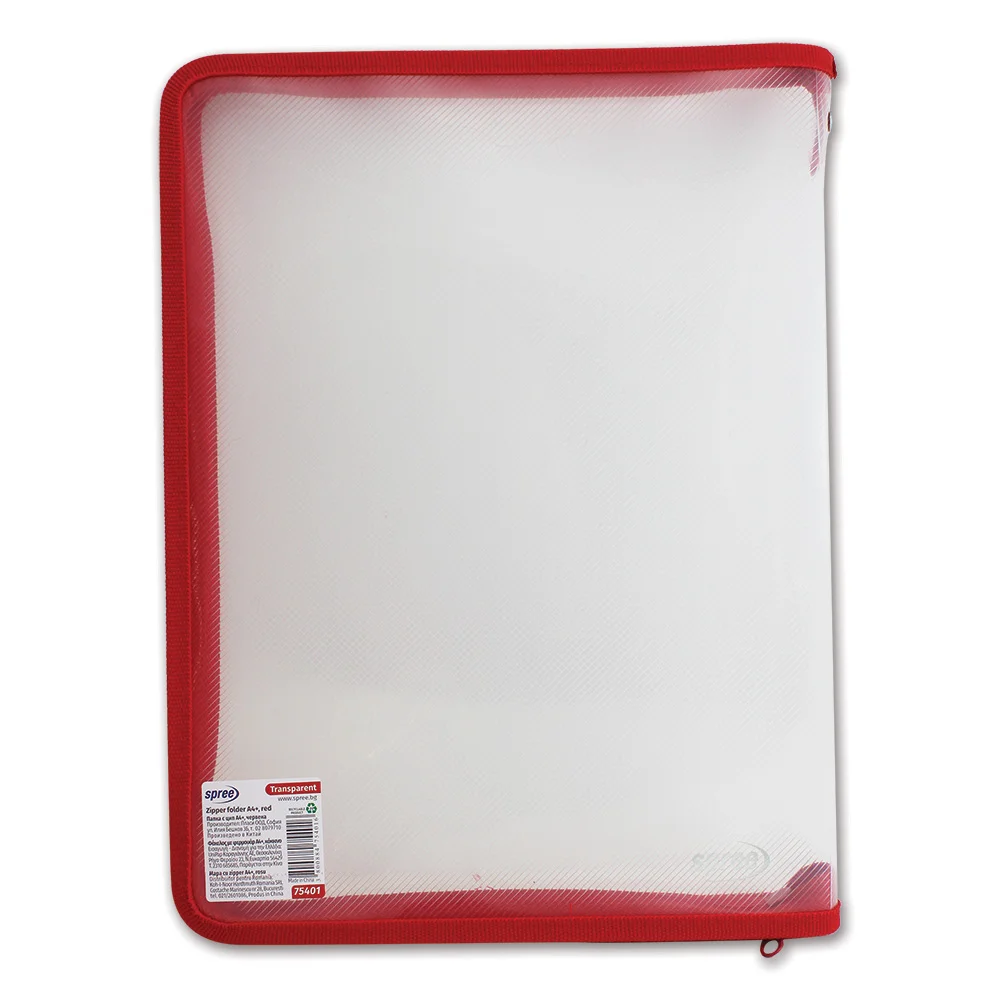 Папка с шит цип червен A4+, 25х33х3 см, прозрачно PPОбадете ни се и ние ще приемем поръчката ви по телефона